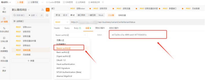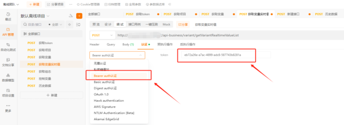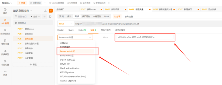 - 请求时选择Bearer auth认证,输入有效token