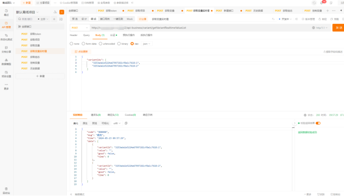 - 接口 URL:http://data.ecsiot.com/api-business/variant/getVariantRealtimeValueList